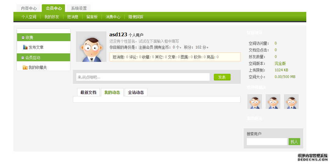 进入会员中心后,点击左上方“内容中心”,进行信息管理相关操作